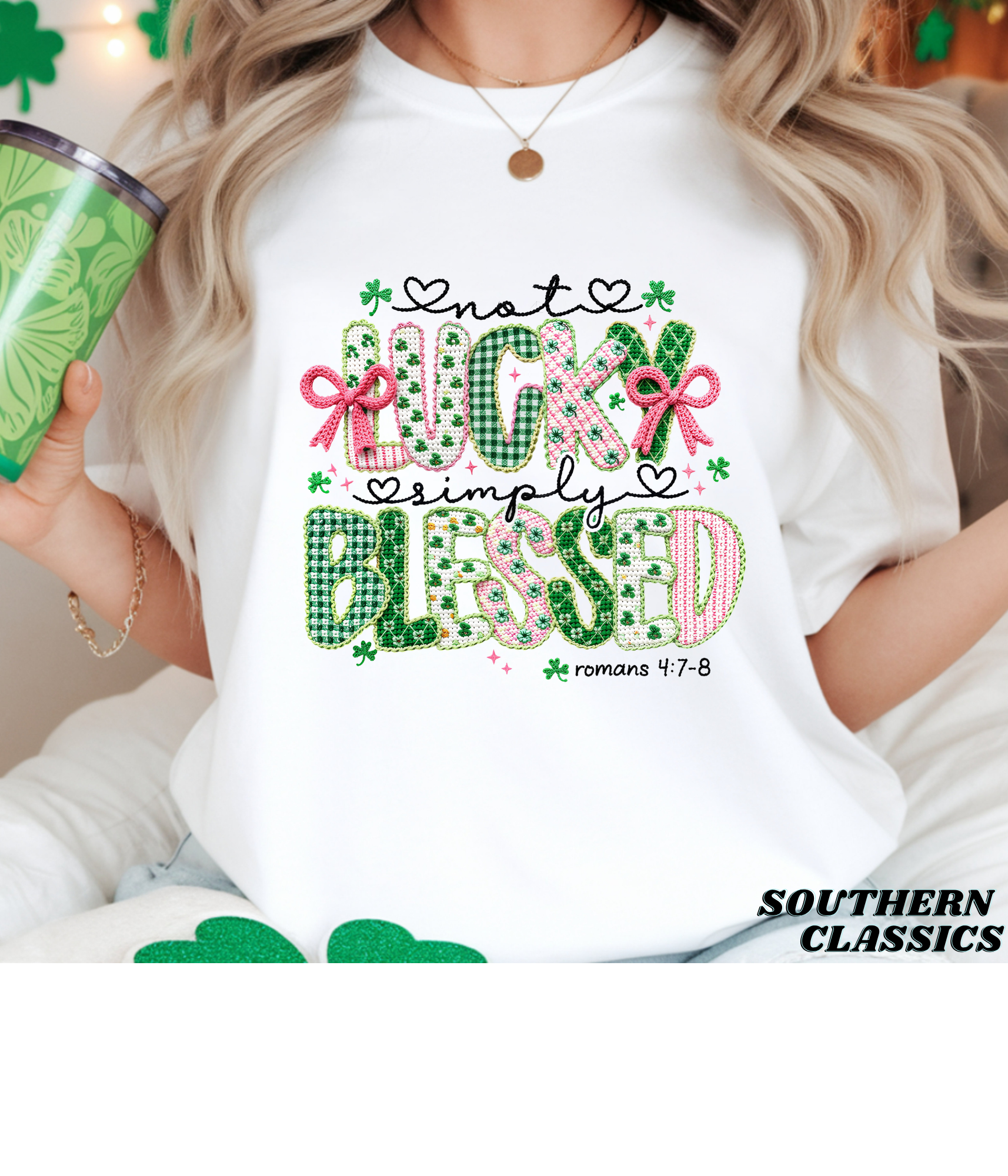 This St. Patrick's Day piece is all about counting your blessings instead of your luck. "Not Lucky Simply Blessed" delivers a cheeky, faith-filled message that stands out from the typical holiday gear. Rock it at the parade, wear it year-round, or gift it to someone who appreciates a little spiritual sass mixed with festive fun. Because sometimes the best luck is recognizing you don't need it.